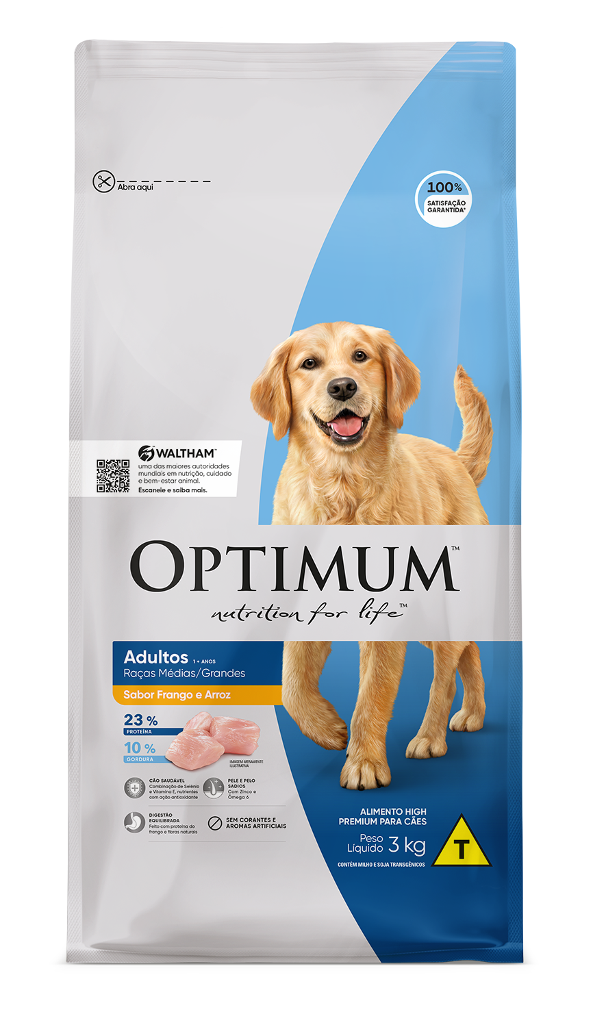 Todos os produtos da marca OPTIMUM™ foram desenvolvidos usando as melhores matérias-primas, proteínas cuidadosamente selecionadas e nutrientes essenciais. A receita de OPTIMUM™ conta com o endosso de milhares de profissionais especializados em nutrição e bem-estar animal, reunidos no Centro de Pesquisa WALTHAM™.